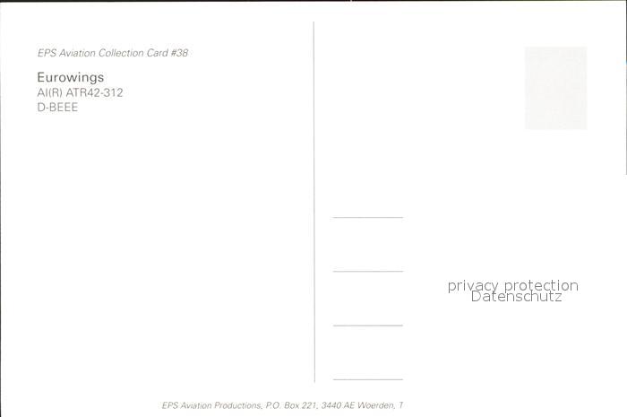 Flugzeuge Zivil Eurowings AlR ATR42-312 D-BEEE postalisch nicht gelaufen Erhaltung siehe scans