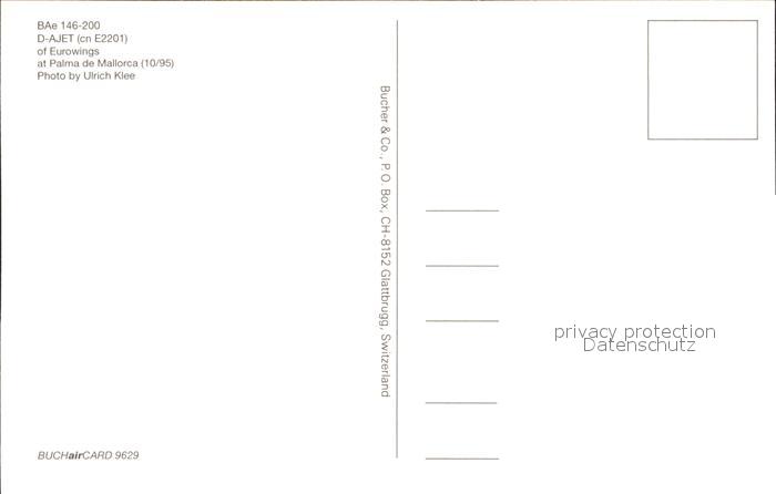 Flugzeuge Zivil Eurowings BAe 146-200 D-AJET cn E2201 postalisch nicht gelaufen Erhaltung siehe scans