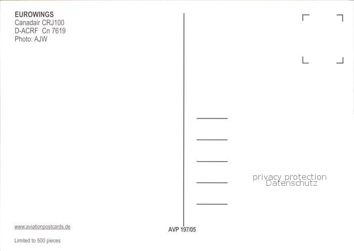 Flugzeuge Zivil Eurowings Canadair CRJ100 D-ACRF Cn 7619 postalisch nicht gelaufen Erhaltung siehe scans