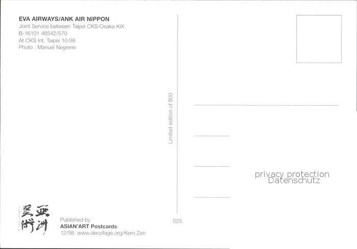 Flugzeuge Zivil Eva Air Ank Air Nippon B-16101 48542/570 postalisch nicht gelaufen Erhaltung siehe scans