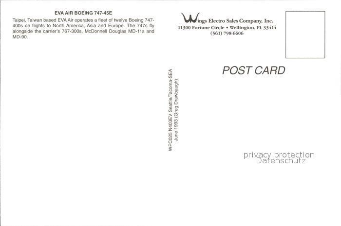 Flugzeuge Zivil Eva Air Boeing 747-45E postalisch nicht gelaufen Erhaltung siehe scans