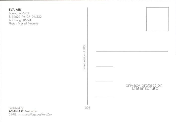Flugzeuge zivil EVA Air Boeing 767-25E B-16623 postalisch nicht gelaufen Erhaltung siehe scans