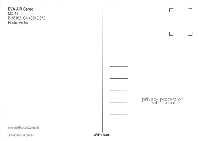 Flugzeuge Zivil EVA AIR CARGO MD-11 B-16102 cn 48543/572 postalisch nicht gelaufen Erhaltung siehe scans