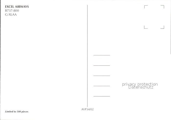 Flugzeuge Zivil Excel Airways B737-800 G-XLAA postalisch nicht gelaufen Erhaltung siehe scans
