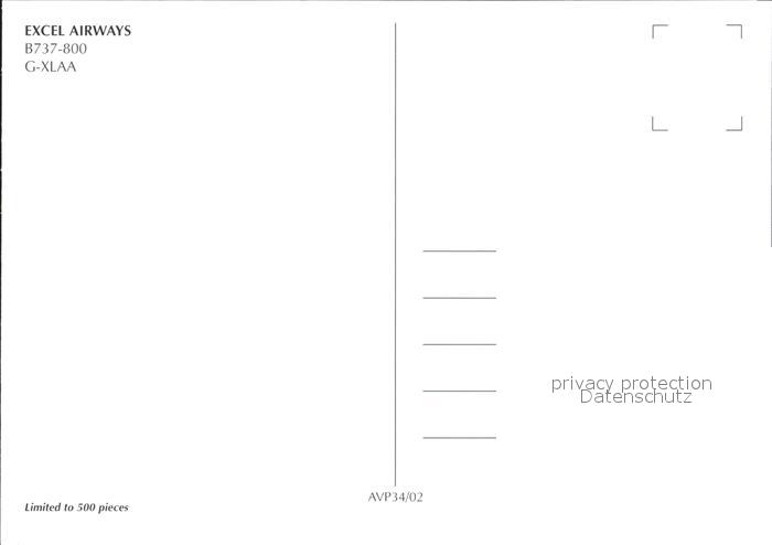 Flugzeuge Zivil Excel Airways B737-800 G-XLAA postalisch nicht gelaufen Erhaltung siehe scans