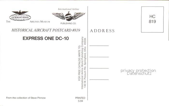 Flugzeuge Zivil Express One DC-10 International Airlines Museum postalisch nicht gelaufen Erhaltung siehe scans
