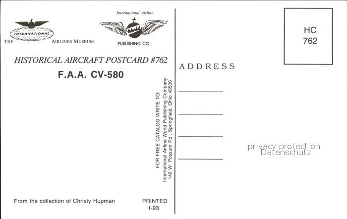 Flugzeuge Zivil F.A.A. CV-580 postalisch nicht gelaufen Erhaltung siehe scans
