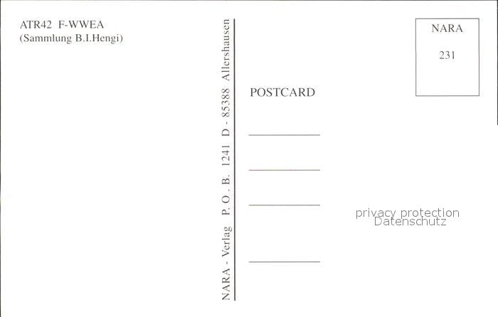 Flugzeuge Zivil F-WWEA ATR42 postalisch nicht gelaufen Erhaltung siehe scans