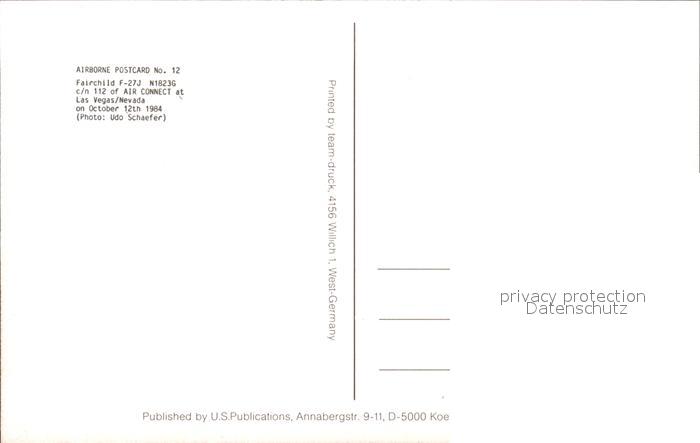 Flugzeuge Zivil Fairchild F-27J N1823G c/n 112 Air Connect postalisch nicht gelaufen