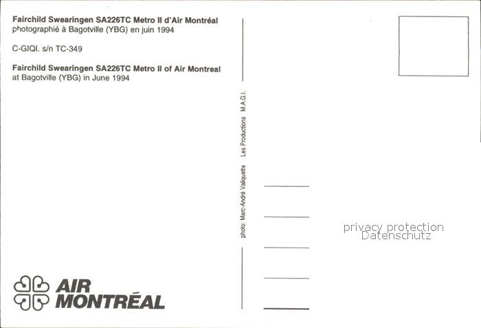 Flugzeuge Zivil Fairchild Swearingen SA226TC Air Montreal C-GIQI s/n TC-349 postalisch nicht gelaufen Erhaltung siehe scans