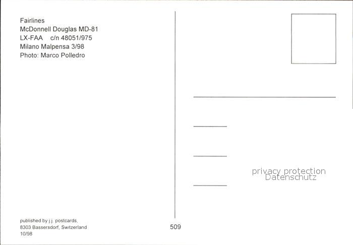 Flugzeuge Zivil Fairlines McDonnell Douglas MD-81 LX-FAA c/n 48051/975 postalisch nicht gelaufen Erhaltung siehe scans