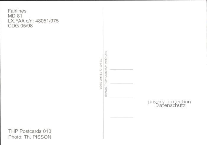 Flugzeuge Zivil Fairlines MD 81 LX.FAA c/n 48051/975 postalisch nicht gelaufen Erhaltung siehe scans