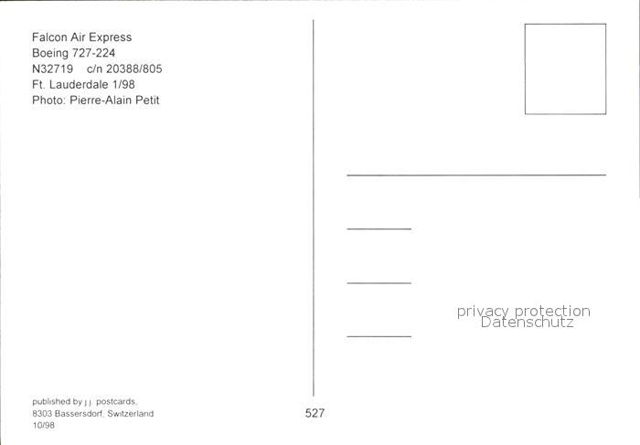 Flugzeuge Zivil Falcon Air Express Boeing 727-224 N32719 c/n 20388/805 postalisch nicht gelaufen Erhaltung siehe scans