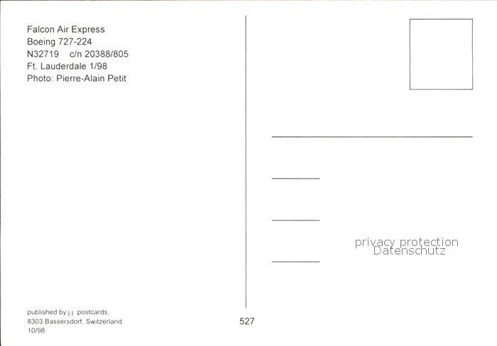 Flugzeuge Zivil Falcon Air Express boeing 727-224 N32719 c/n 20388/805 postalisch nicht gelaufen Erhaltung siehe scans