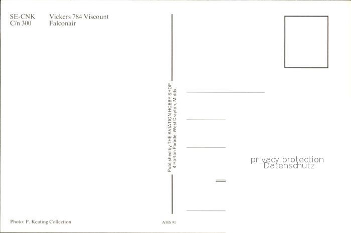Flugzeuge Zivil Falconair SE-CNK Vickers 784 Viscount C/N 300 postalisch nicht gelaufen Erhaltung siehe scans