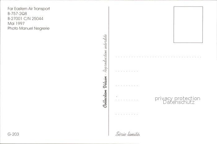 Flugzeuge Zivil Far Eastern Air Transport B-757-2Q8 B-27001 C/N 25044 postalisch nicht gelaufen