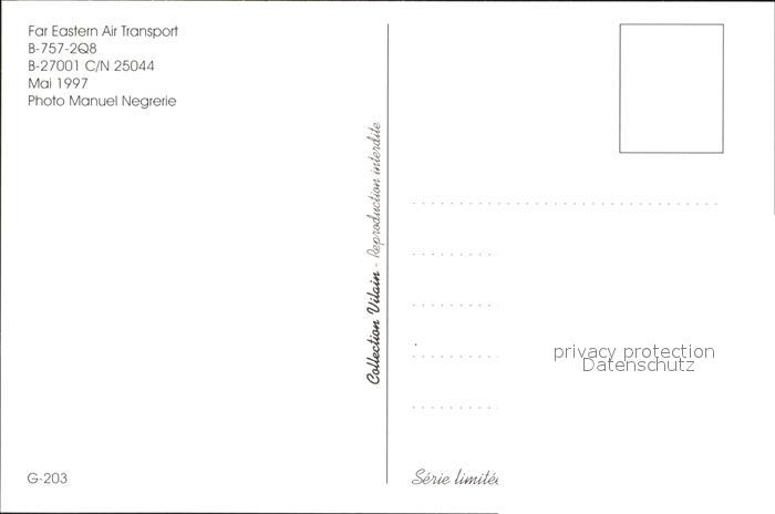 Flugzeuge Zivil Far Eastern Air Transport B-757-2Q8 B-27001 C/N 25044 postalisch nicht gelaufen Erhaltung siehe scans