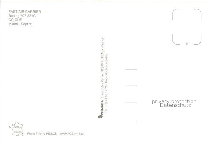 Flugzeuge Zivil Fast Air Carrier Boeing 707-331C CC-CUE postalisch nicht gelaufen Erhaltung siehe scans