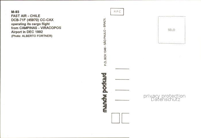 Flugzeuge Zivil Fast Air Chile DCB-71F 45970 CC-CAX postalisch nicht gelaufen Erhaltung siehe scans