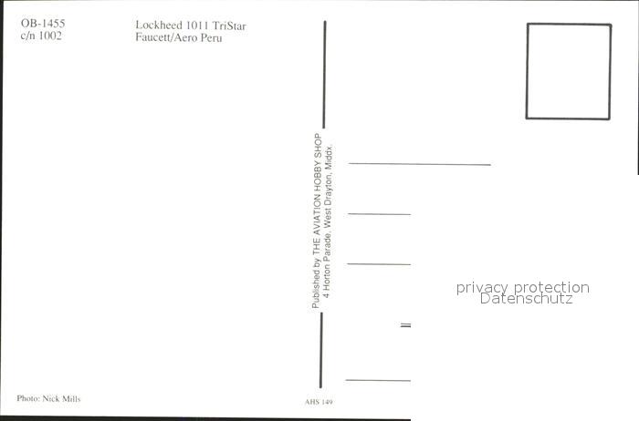 Flugzeuge Zivil Faucett Aero Peru Lockheed 1011 Tristar OB-1455 c/n 1002 postalisch nicht gelaufen Erhaltung siehe scans