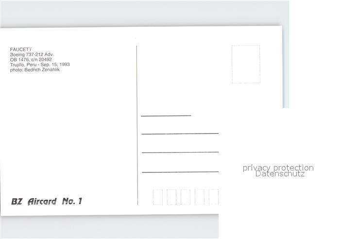 Flugzeuge Zivil Faucett Boeing 737-212 Advanced OB-1476 c/n 20492 postalisch nicht gelaufen Erhaltung siehe scans
