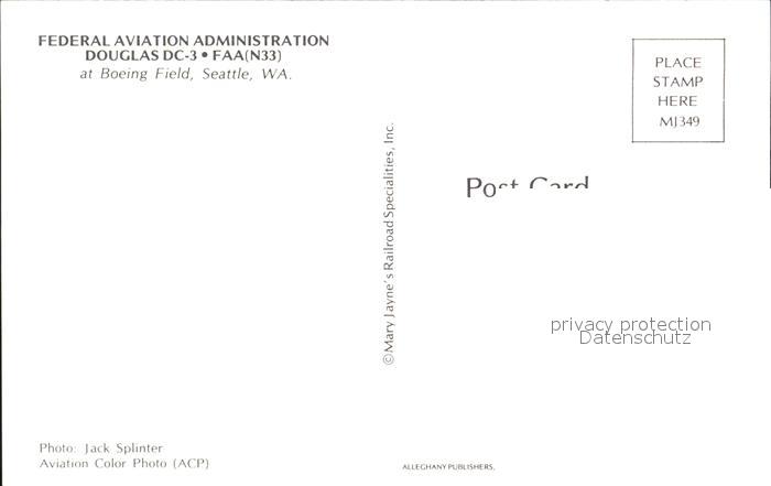 Flugzeuge Zivil Federal Aviation Administration Douglas DC-3 FAA N33 postalisch nicht gelaufen Erhaltung siehe scans