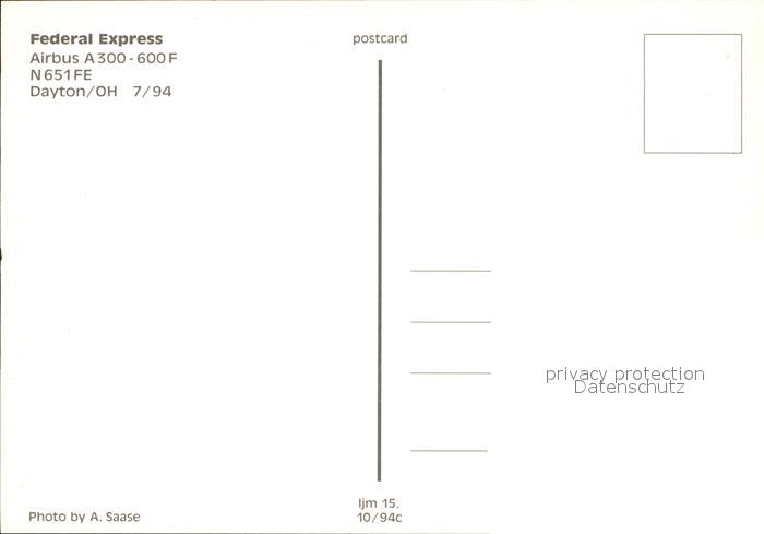 Flugzeuge Zivil Federal Express Airbus A300-600F N651FE postalisch nicht gelaufen Erhaltung siehe scans