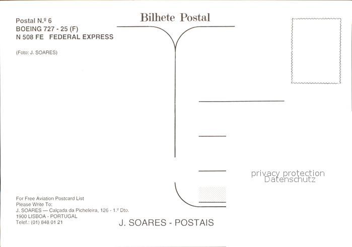 Flugzeuge Zivil Federal Express Boeing 727-25 N508 FE postalisch nicht gelaufen Erhaltung siehe scans