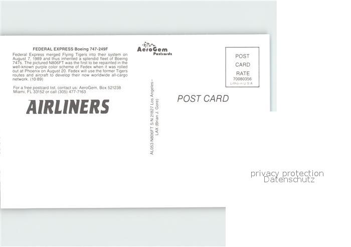 Flugzeuge Zivil Federal Express Boeing 747-249F postalisch nicht gelaufen Erhaltung siehe scans