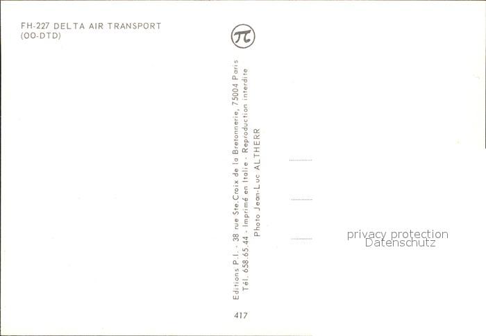 Flugzeuge Zivil FH-227 Delta Air Transport OO-DTD postalisch nicht gelaufen Erhaltung siehe scans
