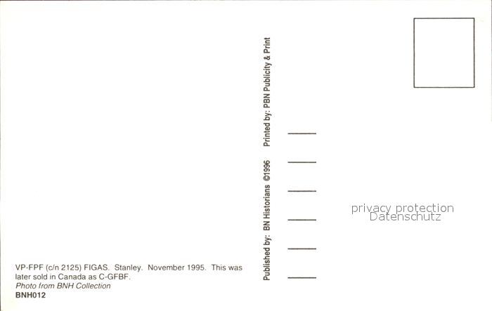 Flugzeuge Zivil Figas VP-FPF c/n 2125 postalisch nicht gelaufen Erhaltung siehe scans