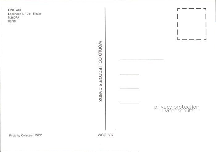 Flugzeuge Zivil Fine Air Lockheed L-101 Tristar N260FA postalisch nicht gelaufen Erhaltung siehe scans