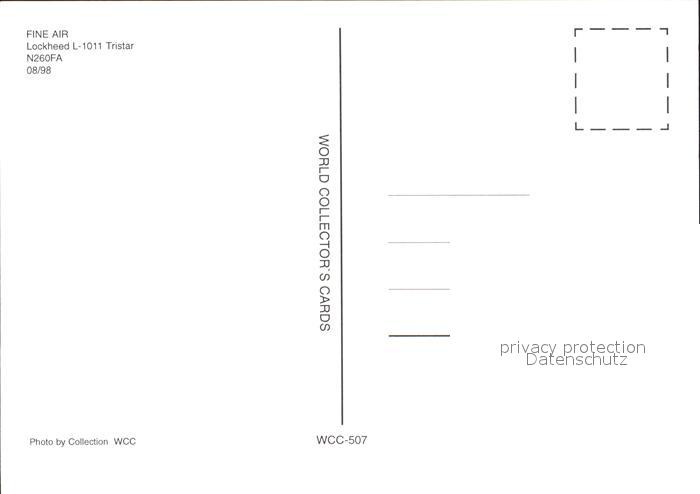 Flugzeuge zivil Fine Air Lockheed L-1011 Tristar N260FA postalisch nicht gelaufen Erhaltung siehe scans