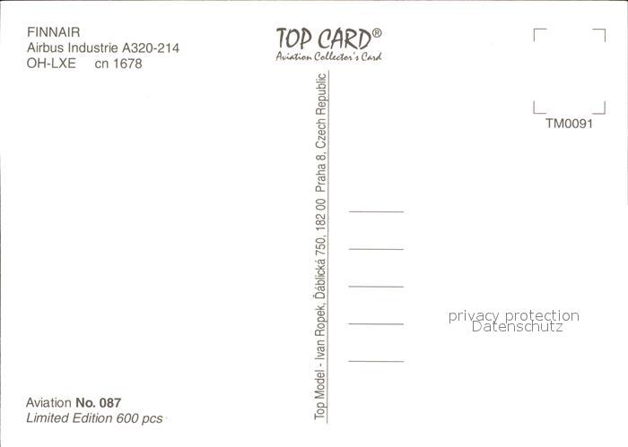 Flugzeuge Zivil Finnair Airbus Industrie A320-214 OH-LXE cn 1678 postalisch nicht gelaufen Erhaltung siehe scans