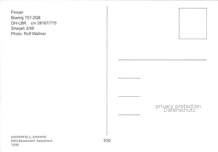 Flugzeuge Zivil Finnair Boeing 757-2Q8 OH-LBR c/n 28167/775 postalisch nicht gelaufen Erhaltung siehe scans