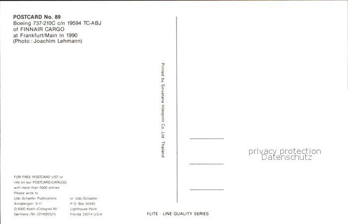 Flugzeuge Zivil Finnair Cargo Boeing 737-210C c’/n 19594 TC-ABJ postalisch nicht gelaufen Erhaltung siehe scans