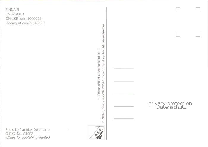 Flugzeuge Zivil Finnair EMB-190LR OH-LKE c/n 19000059 postalisch nicht gelaufen Erhaltung siehe scans