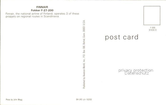 Flugzeuge Zivil Finnair Fokker F-27-200 OH-LKC postalisch nicht gelaufen Erhaltung siehe scans