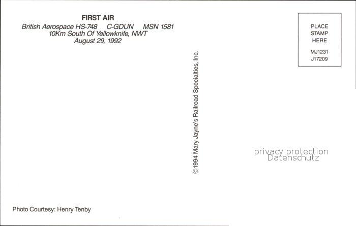 Flugzeuge Zivil First Air British Aerospace HS-748 C-GDUN MSN 1581 postalisch nicht gelaufen Erhaltung siehe scans