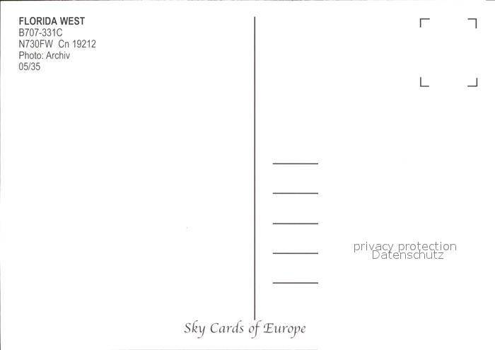 Flugzeuge Zivil Florida West B707-331C N730FW Cn 19212 postalisch nicht gelaufen Erhaltung siehe scans