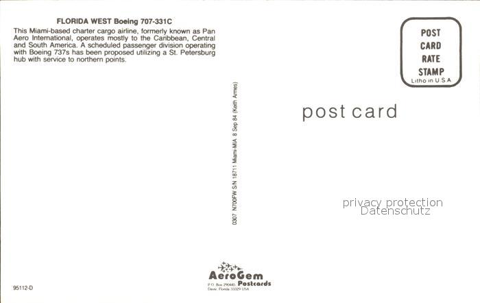 72224837 Flugzeuge Zivil Florida West Boeing 707-331C KatCode 22120000001300