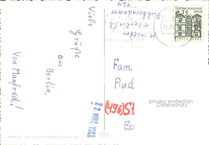 alte Postkarte Flugzeuge Zivil Flughafen Tempelhof Berlin postalisch gelaufen Erhaltung siehe scans