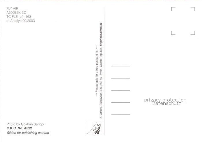 Flugzeuge Zivil Fly Air A300B2K-3C TC-FLE c/n 163 postalisch nicht gelaufen Erhaltung siehe scans