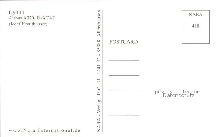 Flugzeuge Zivil Fly FTI Airbus A320 D-ACAF postalisch nicht gelaufen Erhaltung siehe scans