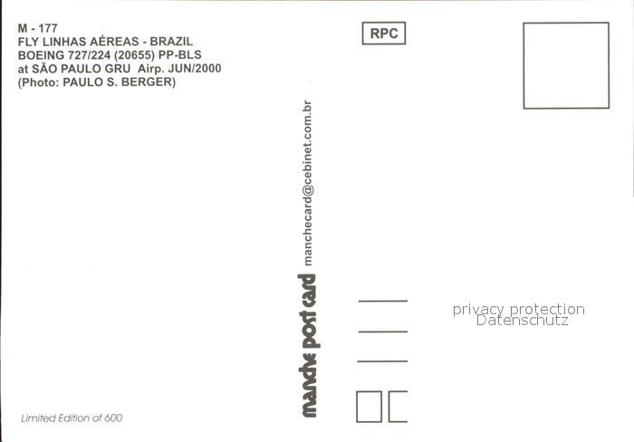 Flugzeuge Zivil Fly Linhas Aereas Boeing 727-224 20655 PP-BLS postalisch nicht gelaufen Erhaltung siehe scans