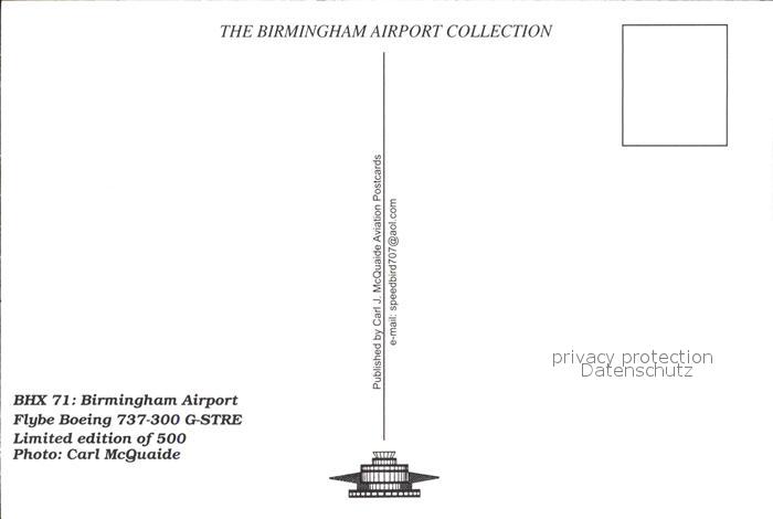Flugzeuge Zivil Flybe Boeing 737-300 G-STRE Birmingham Airport postalisch nicht gelaufen Erhaltung siehe scans