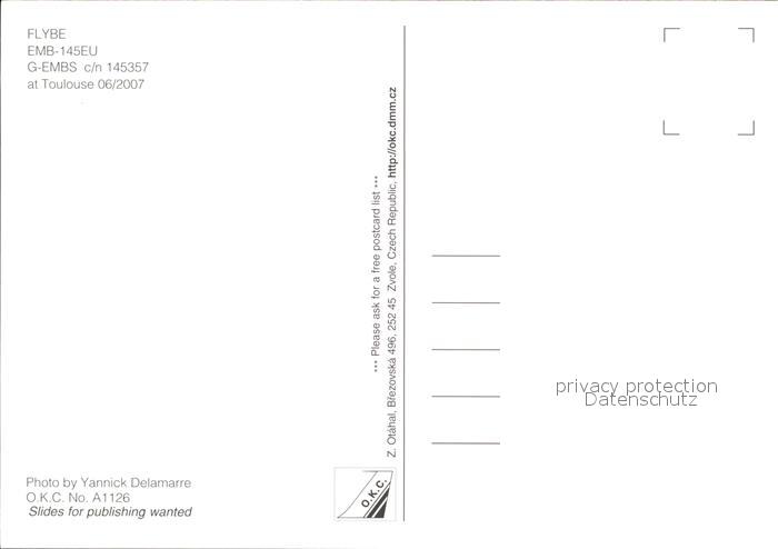 Flugzeuge Zivil Flybe EMB-145EU G-EMBS c/n 145357 postalisch nicht gelaufen Erhaltung siehe scans