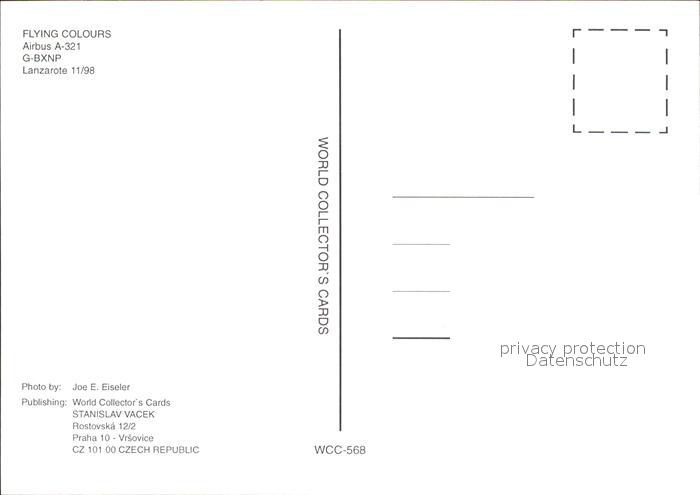 Flugzeuge Zivil Flying Colours A321 G-BXNP postalisch nicht gelaufen Erhaltung siehe scans