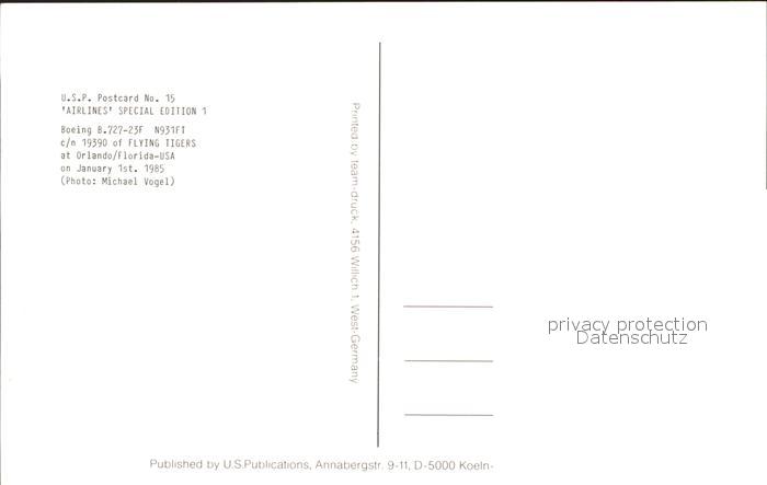 Flugzeuge Zivil Flying Tigers Boeing B-727-23F N931F1 c/n 19390 postalisch nicht gelaufen Erhaltung siehe scans
