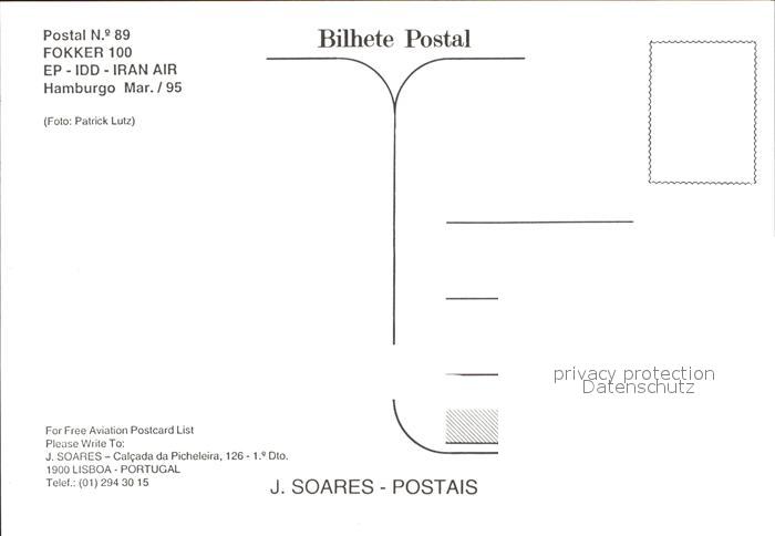 Flugzeuge Zivil Fokker 100 EP-IDD Iran Air postalisch nicht gelaufen Erhaltung siehe scans